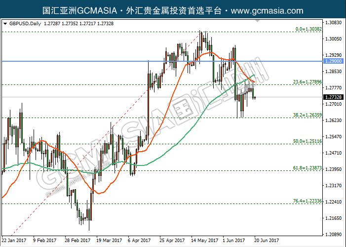GBPUSD D1:镑美触顶回落,当前触及均线阻承压下行;均线死叉既成,高位卖盘震荡加剧,仍有下行空间,后市下行几率较大。上方关注均线压力和1.2790压力,下方关注1.2635支撐和1.2510支撑。