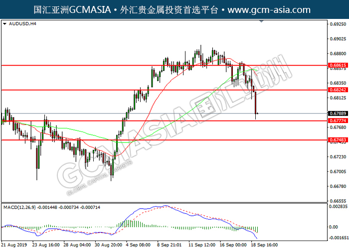 AUDUSD,H4:澳美空头排列,目前测试靠近前期支撑。MACD动能继续略减,若突破继续看空为主。上方关注0.6865压力和0.6860压力,下方关注0.6775支撑和0.6750支撑。
