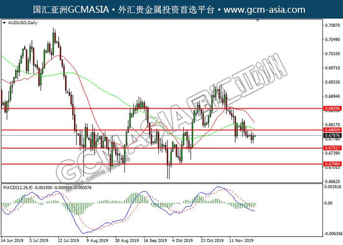 AUDUSD, H4: 澳美震荡下行,目前测试靠近前期支撑。然而,MACD空头动能略减,短期关注多头反弹趋势为主。上方关注0.6825压力和0.6880压力,下方关注0.6770支撑和0.6715支撑。