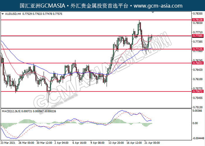 AUDUSD,Daily:澳美低位反弹,目前测试着压力位。MACD空头动能略减,若突破可关注多头为主。上方关注0.7760压力和0.7815压力,下方关注0.7715支撑和0.7665支撑。