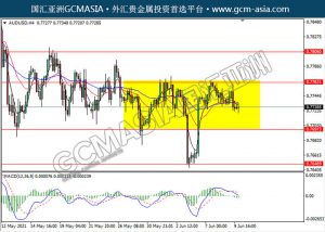AUDUSD,H4:澳美仍区间交易,近期高位承压回落。MACD形成死叉,动功能略减,短期可继续关注空头回调为主。上方关注0.7765压力和0.7805压力,下方关注0.7695支撑和0.7650支撑。