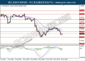 20210630 AUDUSD-午间 by keyk | Jun 30, 2021 | 澳元兑美元 | 0 comments AUDUSD,H4:澳美突破前期支撑,空头排列。MACD动能持续略减,短期继续看空为主。上方关注0.7545压力和0.7595压力,下方关注0.7475支撑和0.7395支撑。