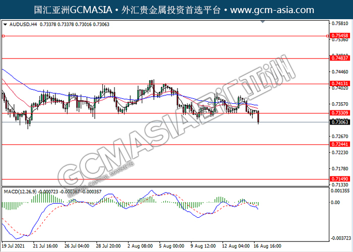 20210817 AUDUSD-午间 by keyk | Aug 17, 2021 | 澳元兑美元 | 0 comments AUDUSD,H4:澳美仍突破前期支撑,震荡下行。MACD动能略减,短期可继续看空为主。上方关注0.7330压力和0.7415压力,下方关注0.7245支撑和0.7150支撑。