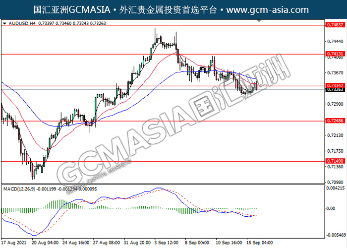 20210916 AUDUSD-午间 by keyk | Sep 16, 2021 | 澳元兑美元 | 0 comments AUDUSD,H4:澳美低位反弹上行,目前测试前期压力。MACD仍显示空头信号,动能略减,短期关注空头方向为主。上方关注0.7330压力和0.7415压力,下方关注0.7250支撑和0.7150支撑。