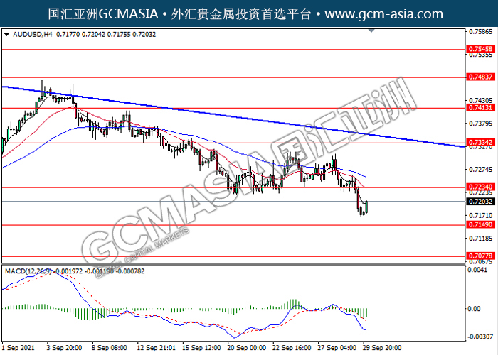 20210930 AUDUSD-午间 by keyk | Sep 30, 2021 | 澳元兑美元 | 0 comments AUDUSD,H4:澳元低位反弹上行。MACD空头动能略减,短期继续关注技术性多头反弹趋势为主。上方关注0.7335压力和0.7335压力,下方关注0.7150支撑和0.7075支撑。