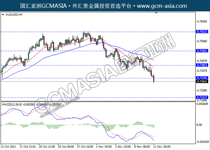 20211111 AUDUSD-午间 by willy | Nov 11, 2021 | 澳元兑美元 | 0 comments AUDUSD,H4:澳美突突破前期支撑,空头排列。MACD动能略减,中期继续看空为主。上方关注0.7385压力和0.7456压力,下方关注0.7220支撑和0.7105支撑。