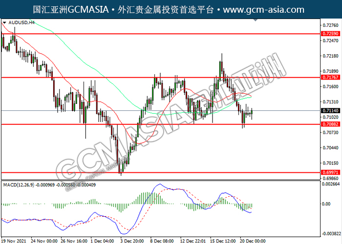 20211221 AUDUSD-午间 by willy | Dec 21, 2021 | 澳元兑美元 | 0 comments AUDUSD,Daily:澳美震荡下行。然而,MACD多头动能略减,短期可关注空头为主。上方关注0.7175压力和0.7365压力,下方关注0.6995支撑和0.6825支撑。