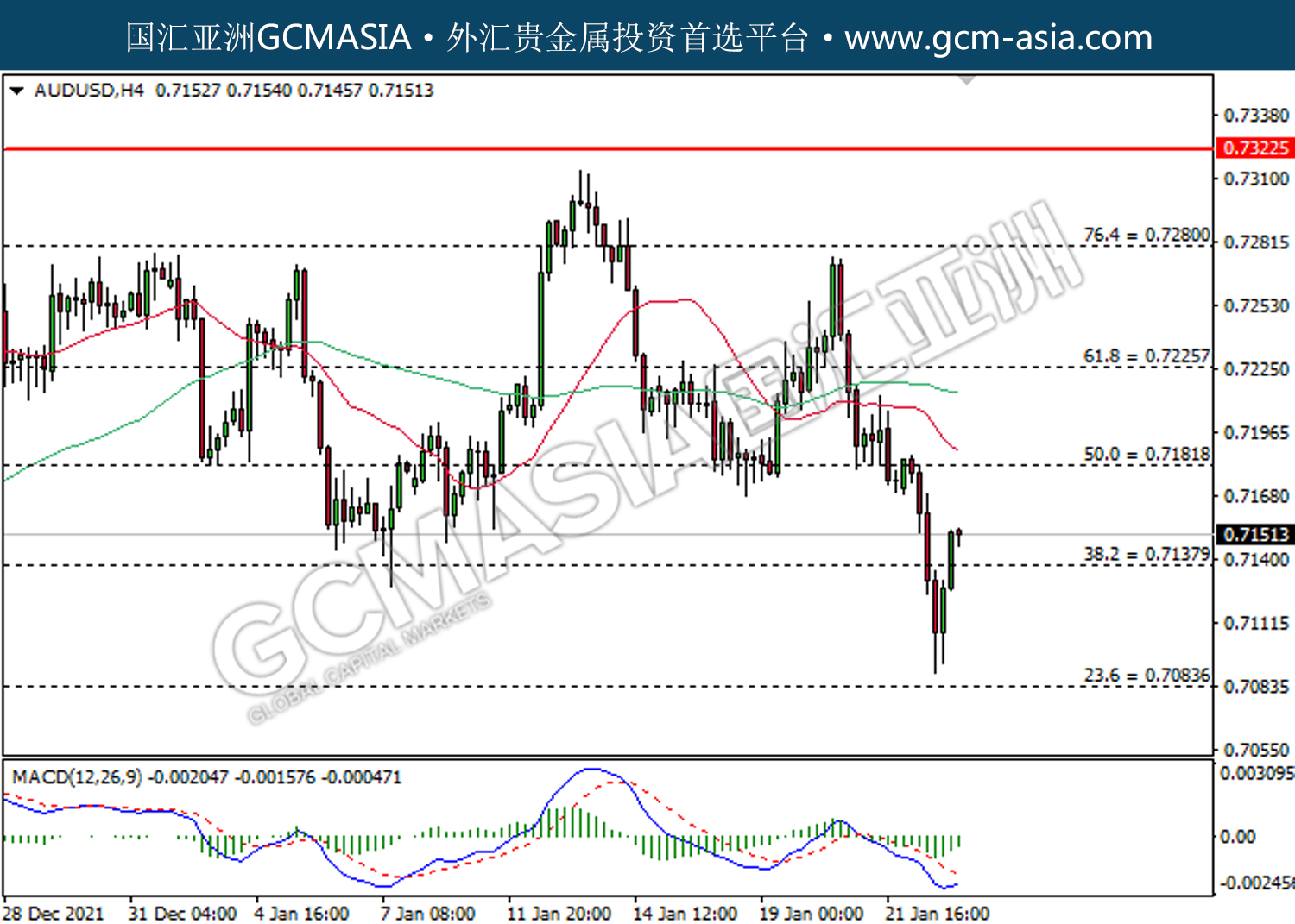 20220125 AUDUSD by willy | Jan 25, 2022 | 澳元兑美元 | 0 comments AUDUSD,H4:澳美低位反弹。MACD空头动能有所略减,短期关注多头势力。上方关注0.7180压力和0.7225压力,下方关注0.7140支撑和0.7085支撑。