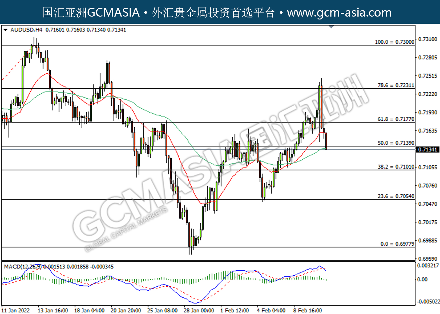 20220211 AUDUSD by willy | Feb 11, 2022 | 澳元兑美元 | 0 comments AUDUSD,H4:澳美高位承压回落。MACD已形成死叉,动能转弱,若下破可继续看空。上方关注0.7180压力和0.7230压力,下方关注0.7140支撑和0.7100支撑。