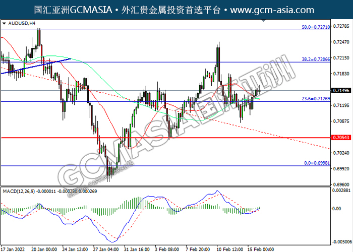 20220216 AUDUSD-午间 by willy | Feb 16, 2022 | 澳元兑美元 | 0 comments AUDUSD,H4:澳美震荡上行。MACD多头动能略增,短期可关注多头为主。上方关注0.7205压力和0.7270压力,下方关注0.7125支撑和0.7055支撑。