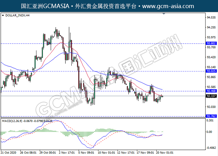 DOLLAR_INDX,H4:美指低位反弹上行,目前测试靠近前期压力。MACD显示多头信号,动能略增,若突破可继续关注多头反弹趋势为主。上方关92.45压力和93.00压力,下方关注91.75支撑和91.00支撑。