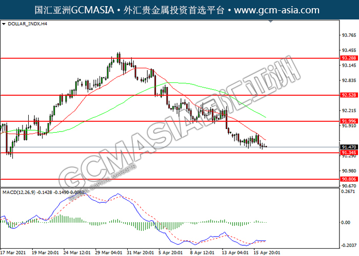 DOLLAR_INDX,H4:美指震荡下行,目前测试前期支撑。MACD多头动能略减,若下破可关注空头为主。上方关92.00压力和92.55压力,下方关注91.35支撑和90.80支撑。