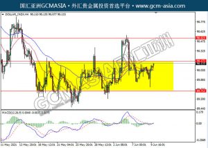 20210610 DOLLAR_INDX-午间 by keyk | Jun 10, 2021 | 美元指数 | 0 comments DOLLAR_INDX,H4:美指仍区间震荡交易,目前测试靠近前期压力。MACD形成金叉,动能略增,若突破可看多为主。上方关90.15压力和90.50压力,下方关注89.70支撑和89.35支撑。