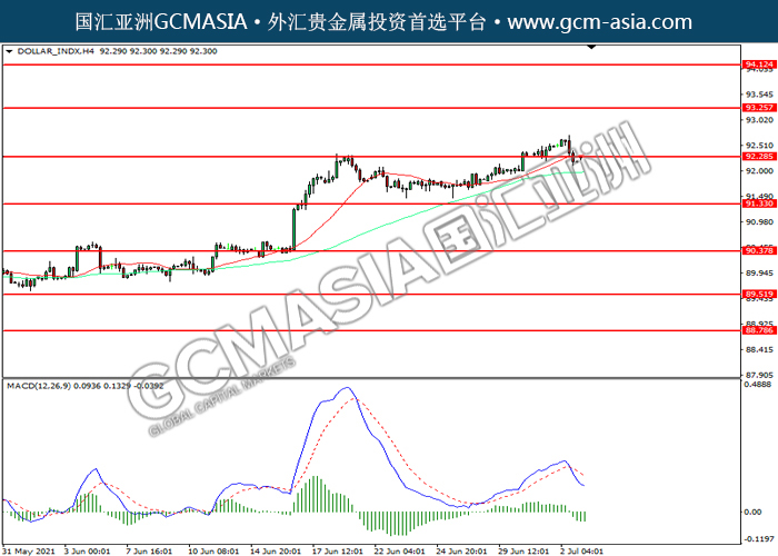 20210705 DOLLAR_INDX-午间 by willy | Jul 5, 2021 | 美元指数 | 0 comments DOLLAR_INDX,Daily:美指震荡下行,目前测试前期支撑。MACD空头动能略增,若下破可关注空头为主。上方关93.25压力和94.10压力,下方关注92.30支撑和91.30支撑。