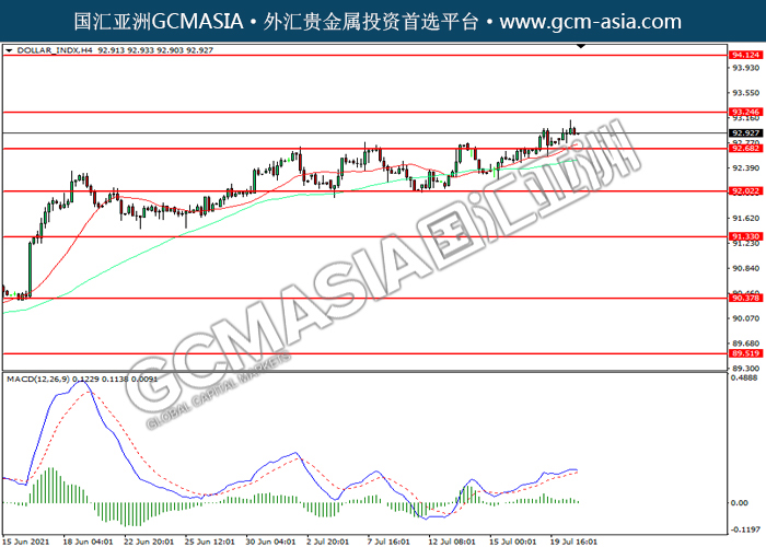 20210721 DOLLAR_INDX by willy | Jul 21, 2021 | 美元指数 | 0 comments EURUSD,Daily: 欧美震荡下行。MACD多头动能略减,短期关注空头为主。上方关注1.1850压力和1.1955压力,下方关注1.1725支撑和1.1635支撑。