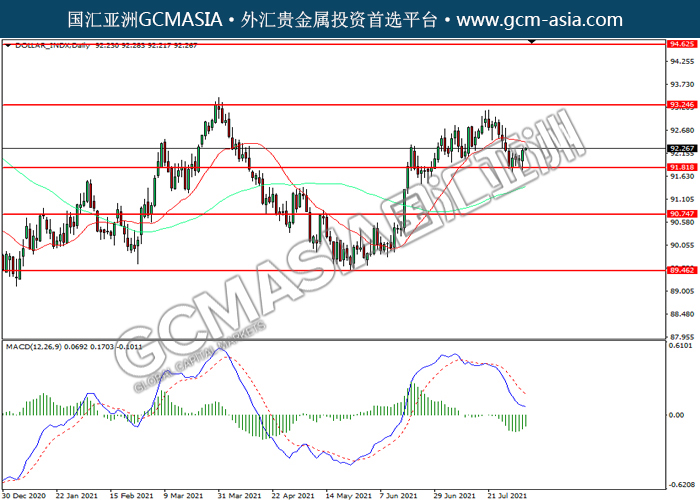20210805 DOLLAR_INDX by willy | Aug 5, 2021 | 美元指数 | 0 comments GBPUSD,H4:镑美震荡下行,目前测试前期支撑。MACD空头动能略增,若下破可关注空头为主。上方关注1.3980压力和1.4100压力,下方关注1.3880支撑和1.3830支撑。