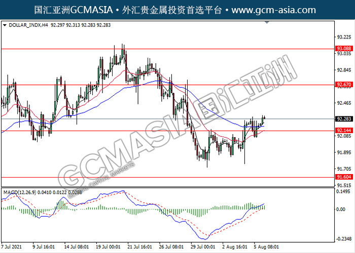 20210806 DOLLAR_INDX-午间 by keyk | Aug 6, 2021 | 美元指数 | 0 comments DOLLAR_INDX,H4:美指近期低位反弹,震荡上行。MACD动能持续略增,中期可继续看多为主。上方关92.65压力和93.10压力,下方关注92.15支撑和91.60支撑。