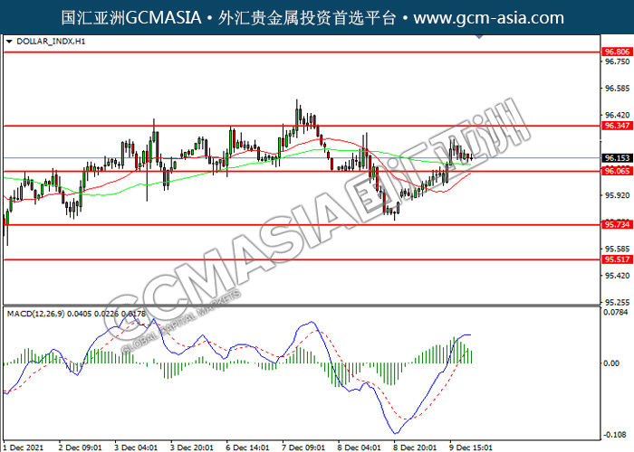 20211210 DOLLAR_INDX by willy | Dec 10, 2021 | 美元指数 | 0 comments DOLLAR_INDX,H1:美指震荡下行,目前测试前期支撑。MACD空头动能略减,若下破可关注空头为主。上方关96.35压力和96.80压力,下方关注96.05支撑和95.75支撑。