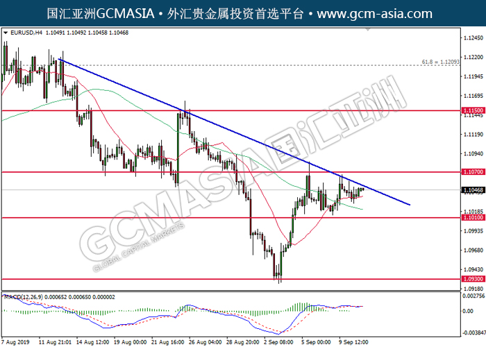 EURUSD,H4:欧美低位反弹,目前测试下行趋势线。MACD已形成金叉,动能偏强,若上破可继续看多。上方关注1.1070压力和1.1150压力,下方关注1.1010支撑和1.0930支撑。