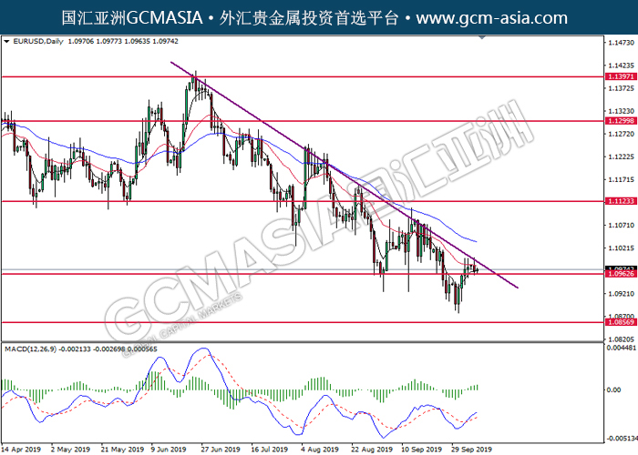 EURUSD,Daily:欧美高位承压回落下行。然而,MACD显示多头,动能略增,短期关注技术性多头反弹趋势为主。上方关注1.1125压力和1.1300压力,下方关注1.0965支撑和1.0855支撑。