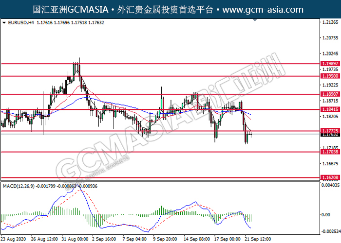 20200922 EURUSD-午间 by willy | Sep 22, 2020 | 欧元兑美元 | 0 comments GCMAsia-EURUSD EURUSD 2020-09-22 EURUSD,H4:欧美低位反弹。MACD显示多头信号,短期可持续关注多头为主。上方关注1.1775压力和1.1840压力,下方关注1.1705支撑和1.1620支撑。