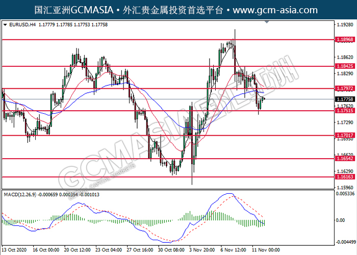 20201112 EURUSD by willy | Nov 12, 2020 | 欧元兑美元 | 0 comments GCMAsia-EURUSD EURUSD 2020-11-12 EURUSD,H4:欧美低位反弹。MACD动能持续略增,短期可关注多头为主。上方关注1.1795压力和1.1840压力,下方关注1.1750支撑和1.1700支撑。