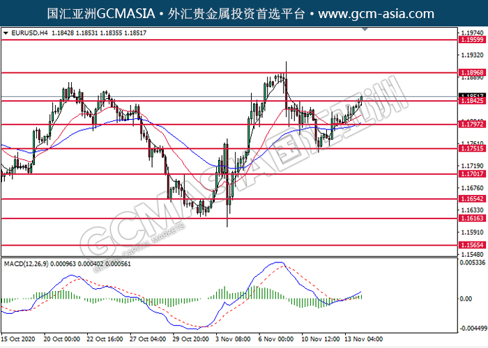 20201116 EURUSD-午间 by willy | Nov 16, 2020 | 欧元兑美元 | 0 comments GCMAsia-EURUSD EURUSD 2020-11-16 EURUSD,H4:欧美突破后持续上行。MACD动能持续略增,短期可关注多头为主。上方关注1.1895压力和1.1960压力,下方关注1.1845支撑和1.1795支撑。