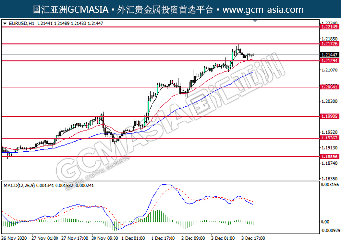 20201204 EURUSD by willy | Dec 4, 2020 | 欧元兑美元 | 0 comments GCMAsia-EURUSD EURUSD 2020-12-04 EURUSD,H1:欧美低位反弹。MACD转向空头,动能略减,短期可关注空头为主。上方关注1.2175压力和1.2215压力,下方关注1.2130支撑和1.2065支撑。
