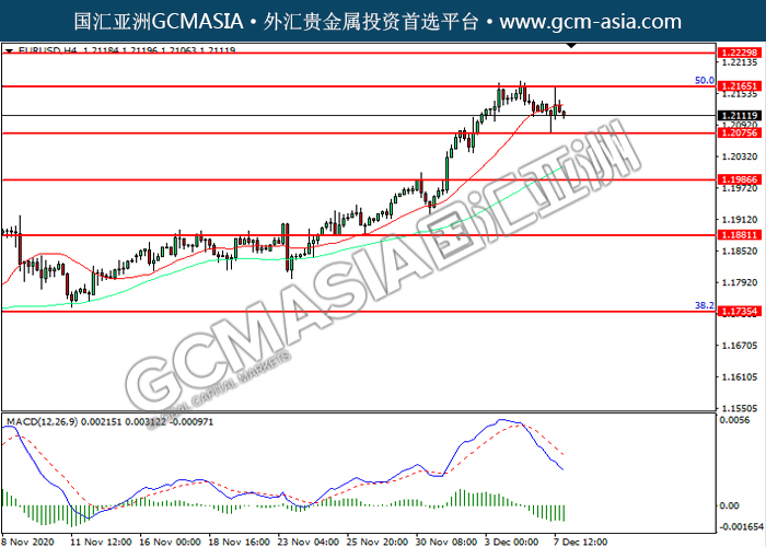 20201208 EURUSD by willy | Dec 8, 2020 | 欧元兑美元 | 0 comments GCMAsia-EURUSD EURUSD 2020-12-08 EURUSD,H4:欧美震荡下行。MACD空头动能略增,短期可关注空头为主。上方关注1.2165压力和1.2230压力,下方关注1.2075支撑和1.1985支撑。