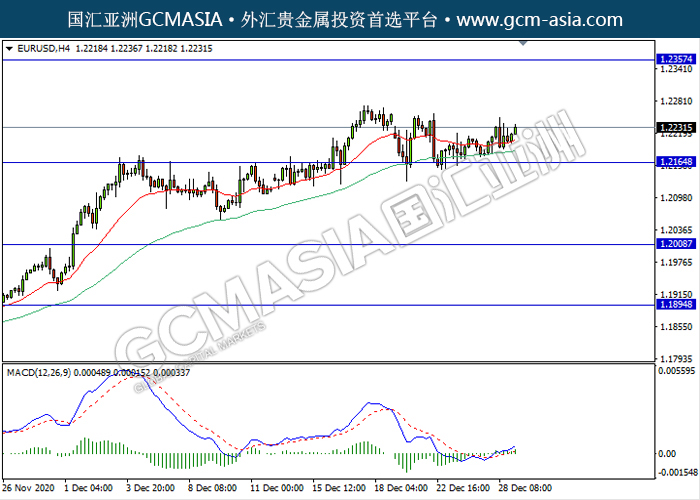 20201229 EURUSD-午间 by keyk | Dec 29, 2020 | 欧元兑美元 | 0 comments GCMAsia-EURUSD EURUSD 2020-12-29 EURUSD,H4:欧美触底反弹上行。MACD形成金叉,动能略增,短期可继续看多趋势为主。上方关注1.2355压力和1.2515压力,下方关注1.2165支撑和1.2010支撑。