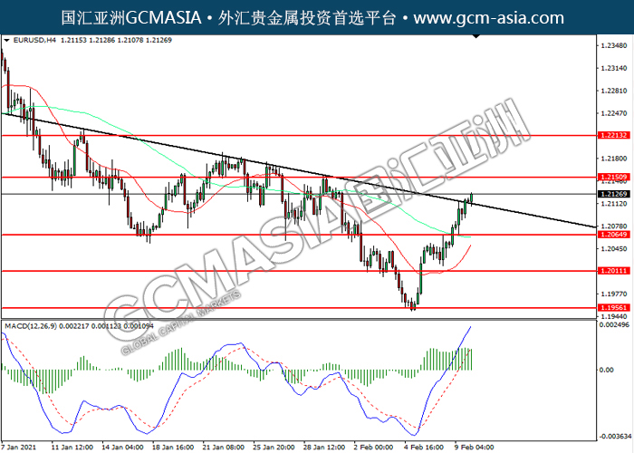 20210210 EURUSD-午间 by keyk | Feb 10, 2021 | 欧元兑美元 | 0 comments GCMAsia-EURUSD EURUSD 2021-02-10 EURUSD,H4:欧美震荡上行。然而,MACD多头动能开始略减,短期关注技术性回调为主。上方关注1.2150压力和1.2215压力,下方关注1.2065支撑和1.2010支撑。