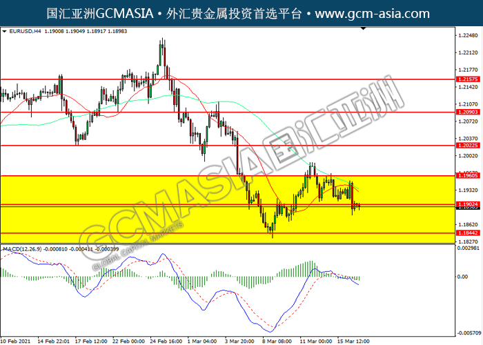 EURUSD,H4:欧美震荡下行,目前测试前期支撑。MACD空头动能略增,若下破可关注空头为主。上方关注1.1960压力和1.2020压力,下方关注1.1900支撑和1.1845支撑。