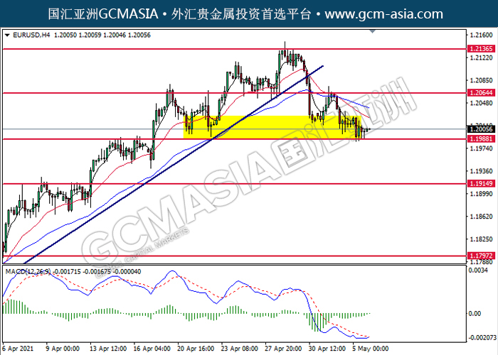 EURUSD,H4:欧美高位承压后回落,目前测试着支撑位。然而,MACD空头动能略减,短期可关注技术性反弹。上方关注1.2065压力和1.2135压力,下方关注1.1990支撑和1.1915支撑。