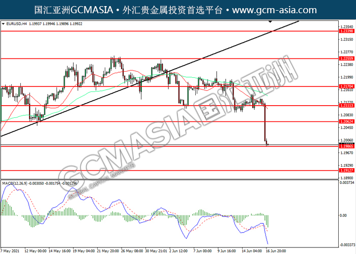 20210617 EURUSD by willy | Jun 17, 2021 | 欧元兑美元 | 0 comments EURUSD,H4: 欧美震荡下行,目前测试前期支撑。MACD空头动能略增,若下破可关注空头为主。上方关注1.2060压力和1.2110压力,下方关注1.1985支撑和1.1915支撑。