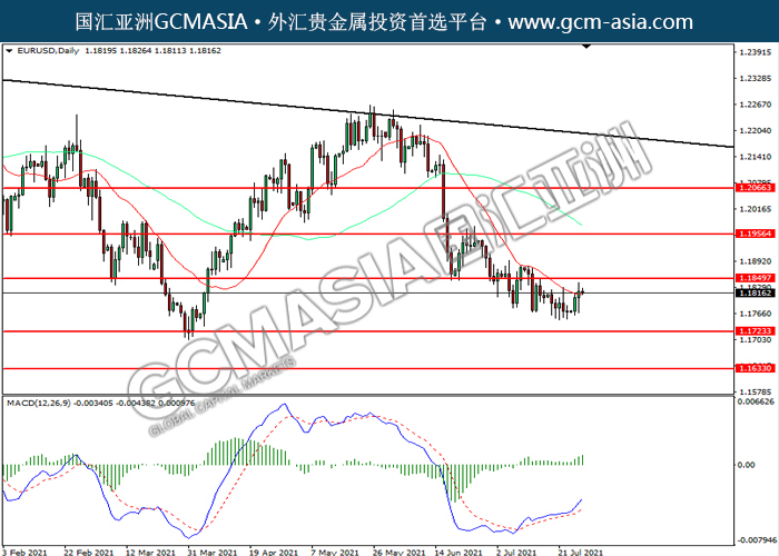 20210728 EURUSD-午间 by willy | Jul 28, 2021 | 欧元兑美元 | 0 comments EURUSD,Daily: 欧美震荡上行,目前测试前期压力。MACD多头动能略增,若突破可关注多头为主。上方关注1.1850压力和1.1955压力,下方关注1.1725支撑和1.1635支撑。