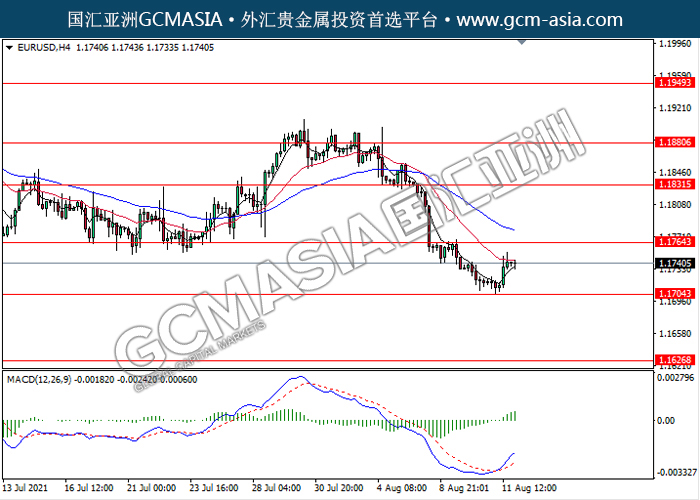 20210812 EURUSD-午间 by keyk | Aug 12, 2021 | 欧元兑美元 | 0 comments EURUSD,H4: 欧美触底反弹上行。MACD形成金叉,动能略增,短期继续关注多头反弹为主。上方关注1.1765压力和1.1830压力,下方关注1.1705支撑和1.1625支撑。