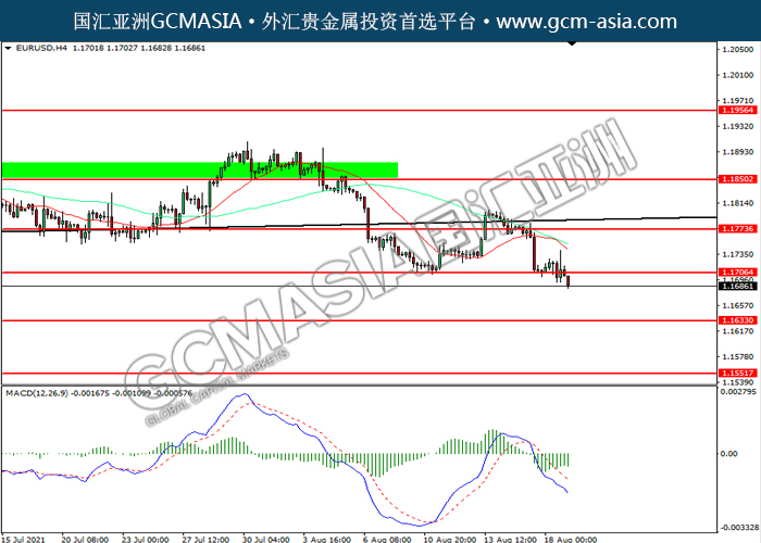 EURUSD,H4: 欧美下破前期支撑,震荡下行。MACD空头动能略增,短期可关注空头为主。上方关注1.1705压力和1.1775压力,下方关注1.1635支撑和1.1550支撑。
