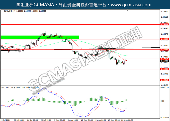 EURUSD,H4: 欧美震荡盘整,目前测试前期亚拉。MACD多头动能略增,若突破可关注多头为主。上方关注1.1705压力和1.1775压力,下方关注1.1635支撑和1.1550支撑。