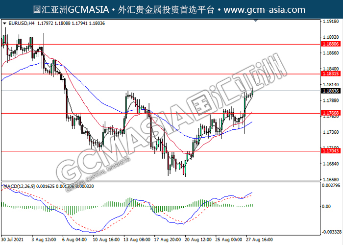 20210830 EURUSD-午间 by keyk | Aug 30, 2021 | 欧元兑美元 | 0 comments EURUSD,H4: 欧美突破前期压力,多头排列。MACD动能持续略增,中期继续看多为主。上方关注1.1830压力和1.1880压力,下方关注1.1765支撑和1.1705支撑。