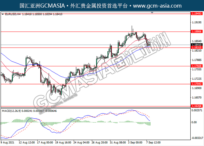 20210908 EURUSD-午间 by keyk | Sep 8, 2021 | 欧元兑美元 | 0 comments EURUSD,H4: 欧美近期高位承压回落,目前测试前期支撑。MACD动能略减,若突破可继续看空方向为主。上方关注1.1885压力和1.1950压力,下方关注1.1830支撑和1.1765支撑。