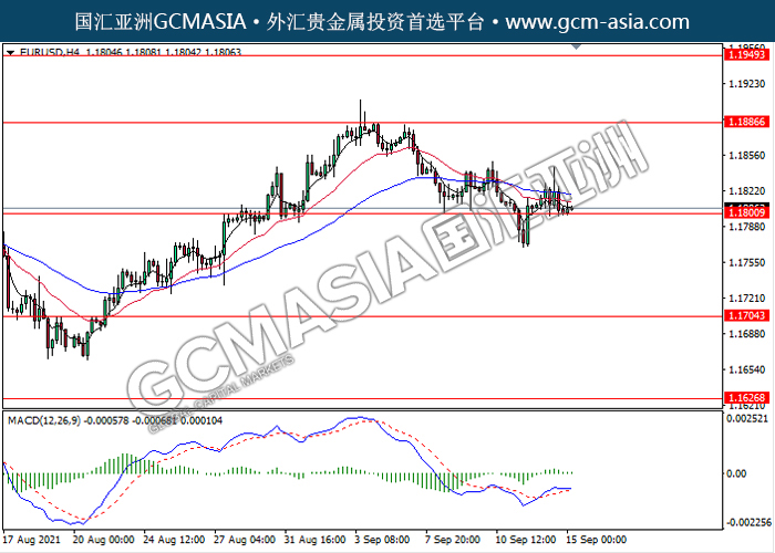 20210915 EURUSD-午间 by keyk | Sep 15, 2021 | 欧元兑美元 | 0 comments EURUSD,H4: 欧美震荡下行,目前测试前期支撑。MACD多头动能略减,若突破可继续看空为主。上方关注1.1885压力和1.1950压力,下方关注1.1800支撑和1.1705支撑。