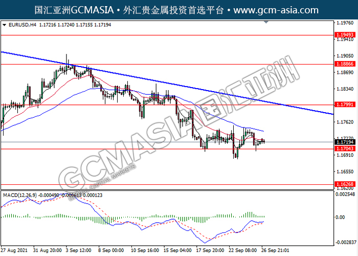 20210927 EURUSD-午间 by keyk | Sep 27, 2021 | 欧元兑美元 | 0 comments EURUSD,H4: 欧美震荡盘整靠近前期支撑。然而,MACD多头动能略减,若突破可关注空头方向为主。上方关注1.1800压力和1.1885压力,下方关注1.1705支撑和1.1625支撑。