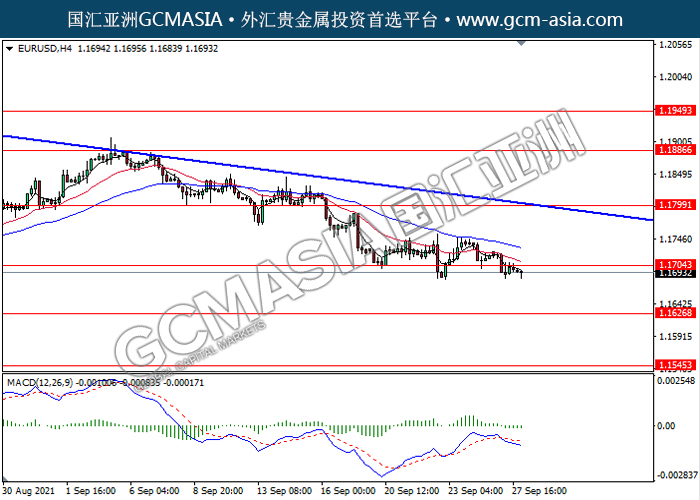 20210928 EURUSD-午间 by keyk | Sep 28, 2021 | 欧元兑美元 | 0 comments EURUSD,H4: 欧美突破前期支撑,震荡下行。MACD动能略减,短期继续看空为主。上方关注1.1705压力和1.1800压力,下方关注1.1625支撑和1.1545支撑。