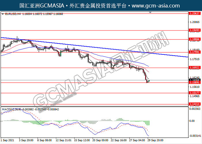 EURUSD,H4: 欧美空头排列,目前测试前期支撑。然而,MACD空头动能略减,短期关注多头反弹为主。上方关注1.1690压力和1.1800压力,下方关注1.1590支撑和1.1515支撑。