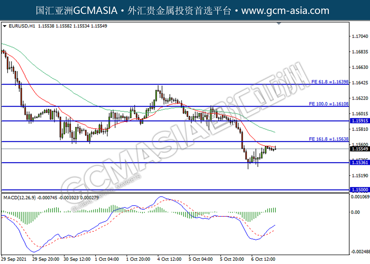 20211007 EURUSD by willy | Oct 7, 2021 | 欧元兑美元 | 0 comments EURUSD,H1: 欧美低位反弹。MACD已形成金叉,动能转强,若上破可关注多头势力为主。上方关注1.1565压力和1.1590压力,下方关注1.1535支撑和1.1500支撑。