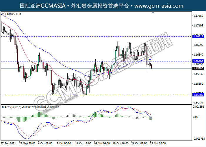 20211026 EURUSD-午间 by willy | Oct 26, 2021 | 欧元兑美元 | 0 comments EURUSD,H4:欧美突破前期支撑,空头排列。MACD动能持续略减,中期继续看空为主。上方关注1.1615压力和1.1680压力,下方关注1.1530支撑和1.1455支撑。