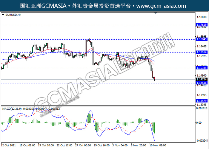 20211111 EURUSD-午间 by willy | Nov 11, 2021 | 欧元兑美元 | 0 comments EURUSD,H4: 欧美空头排列,目前测试前期支撑。MACD动能持续略减,若突破继续看空为主。上方关注1.1535压力和1.1615压力,下方关注1.1455支撑和1.1355支撑。