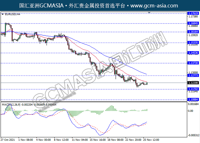 20211126 EURUSD-午间 by willy | Nov 26, 2021 | 欧元兑美元 | 0 comments EURUSD,H4: 欧美触底反弹上行。MACD动能略增,短期继续看多反弹为主。上方关注1.1275压力和1.1375压力,下方关注1.1170支撑和1.1090支撑。