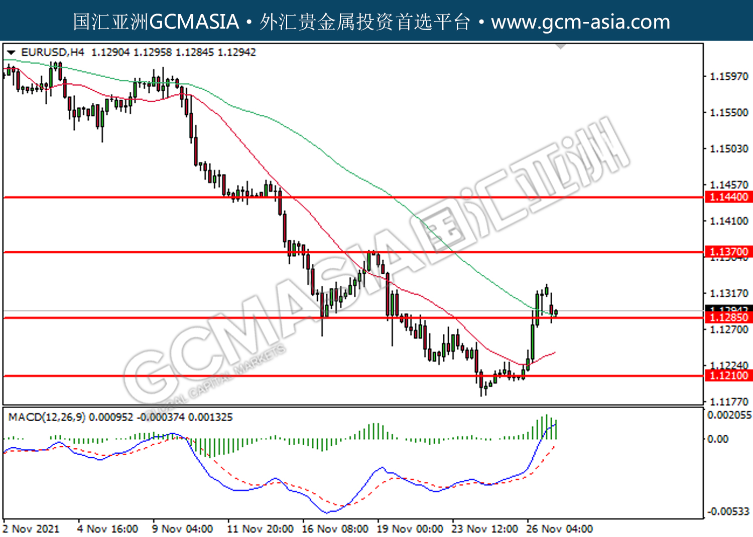 20211129 EURUSD by willy | Nov 29, 2021 | 欧元兑美元 | 0 comments EURUSD,H4:欧美受承压回落。MACD多头动能有所略减,若下破可关注空头为主。上方关注1.1370压力和1.1440压力,下方关注1.1285支撑和1.1210支撑。