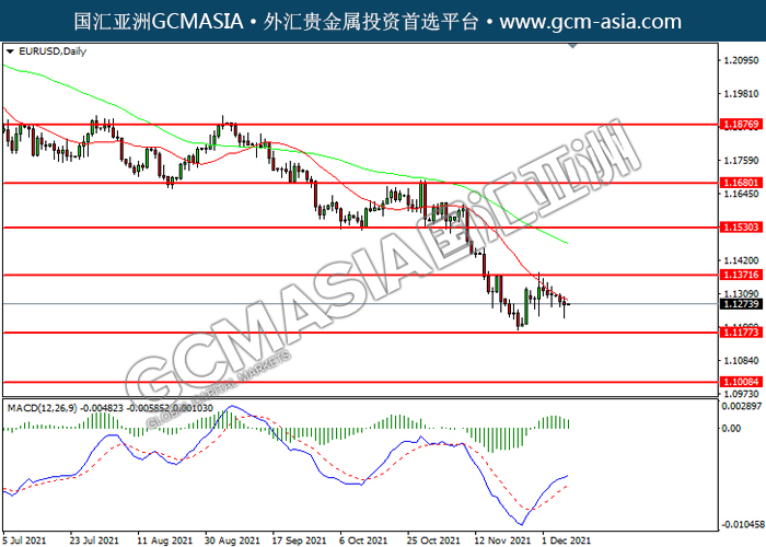 20211208 EURUSD by willy | Dec 8, 2021 | 欧元兑美元 | 0 comments EURUSD,Daily: 欧美震荡下行。MACD多头动能略减,短期可关注空头为主。上方关注1.1370压力和1.1530压力,下方关注1.1175支撑和1.1010支撑。